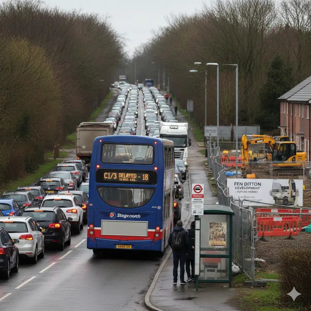 High Ditch Road records 12,000 vehicles daily, up 30% since 2023 per Cambridgeshire County Council data. As reported by (David Ross) of Cambridge Independent, Ditton Lane junction fails capacity thresholds.
