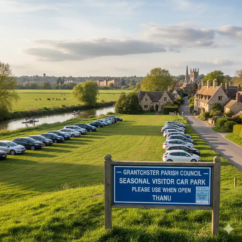 To relieve pressure on the tight village streets, the Parish Council operates a seasonal car park in a field close to the mill pond, just inside the village boundary when entering from Trumpington, which is signposted on local maps and promoted as the preferred option for visitors. The same local guidance explains that the field is only opened on “sunny days” between Easter and the end of September, normally at weekends and on bank holiday Mondays, because the grass surface must be dry and because demand spikes when the weather is fine. A suggested donation of £5 per car is requested, with proceeds after costs going back into projects “for the good of the village”, underlining that the car park is a community‑run response to seasonal pressure rather than a commercial venture.