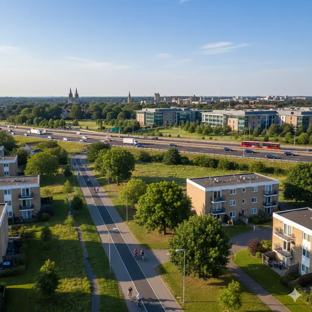 King’s Hedges occupies the northern fringe of Cambridge, bordered by the A14 and adjacent to the Cambridge Science Park. This positioning provides quick access to the city center via bus routes and the Guided Busway, while keeping residents away from premium central zones. The ward spans about 125 acres, developed primarily in the late 1960s as council housing to accommodate overspill from older city areas.