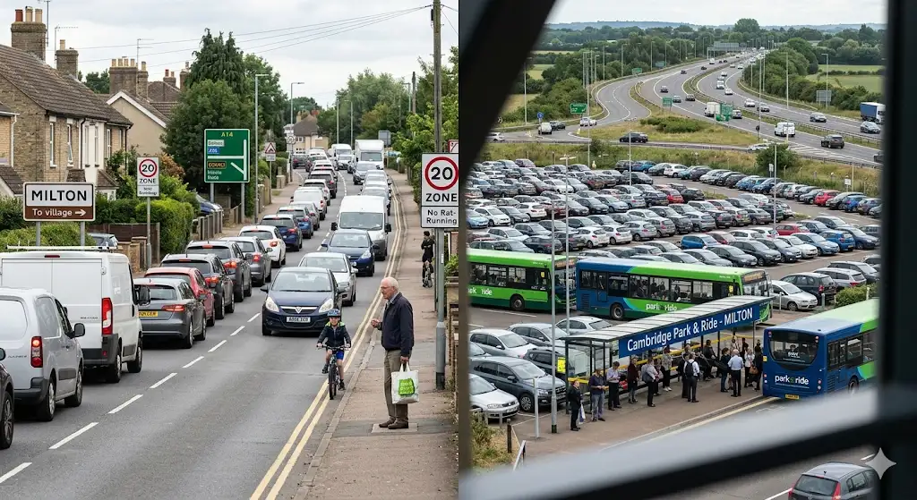 Transport is another major reason why Milton provokes strong reactions. The village lies close to the A14 and A10, and it hosts the Milton Park & Ride, which is part of the wider Cambridge Park & Ride network designed to reduce traffic into the city centre.