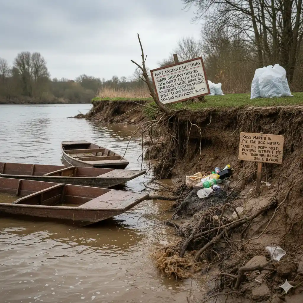 Punting erodes banks. East Anglian Daily Times’ Mark Smulian quoted ecologist Gavin Patel: “500 boats weekly scour silt; kingfisher habitats shrink.” 2024 floods mixed sewage with picnic waste.