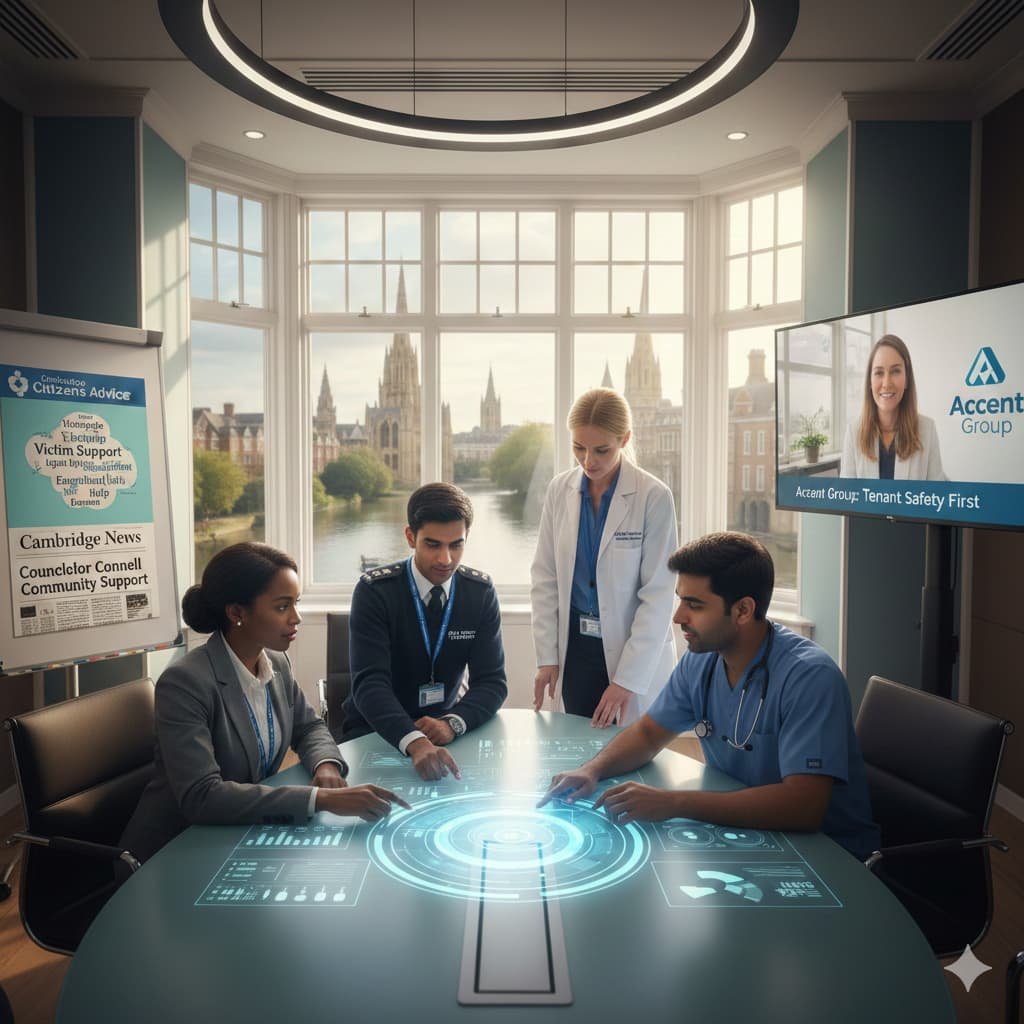 Cambridge City Council leads, with Cambridgeshire Constabulary, Public Health England, and Addenbrooke’s NHS Trust core. Housing providers like Accent Group target tenant safety, per Emily Carter.