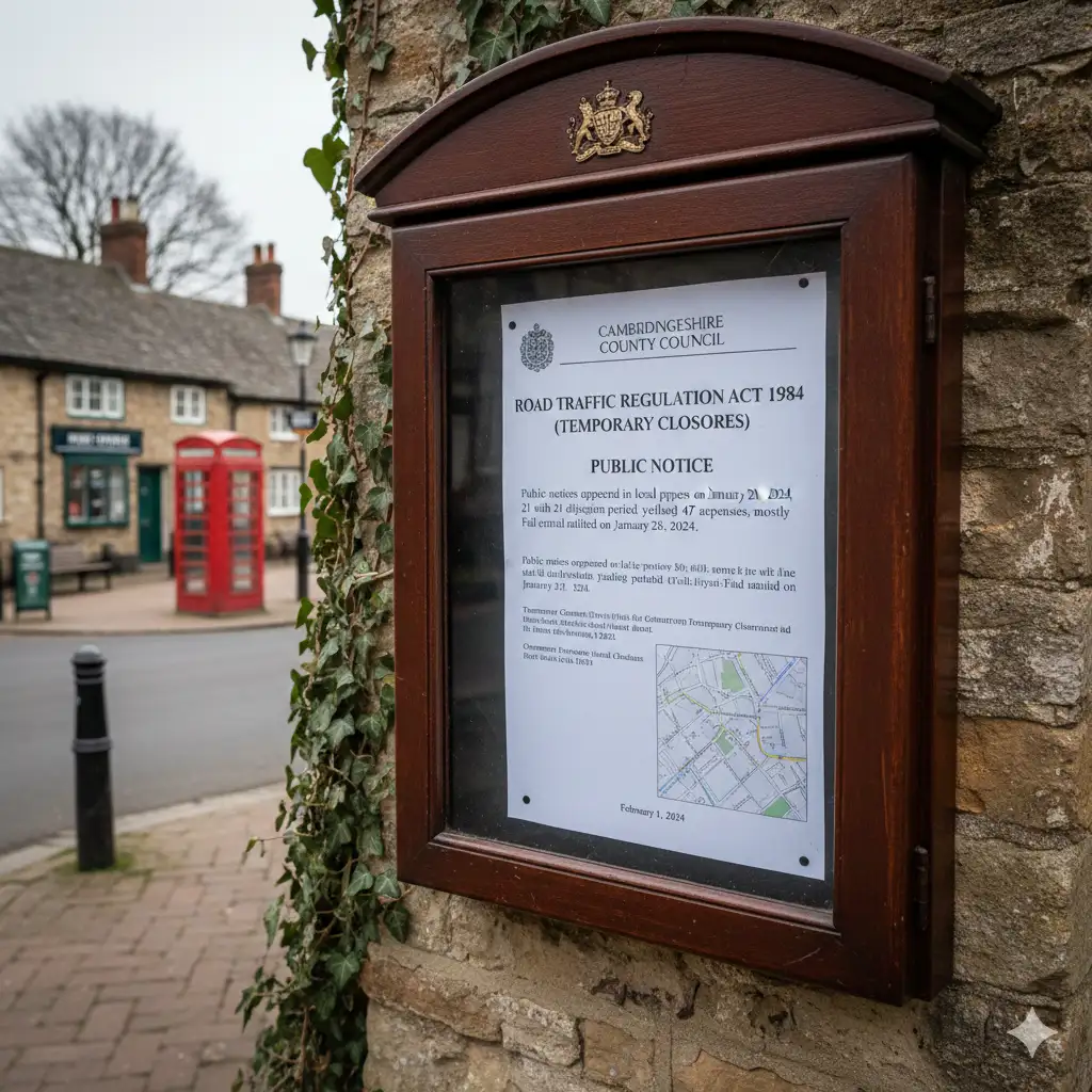 Cambridgeshire County Council holds statutory powers under the Road Traffic Regulation Act 1984 for temporary closures. Public notices appeared in local papers on January 20, with a 21-day objection period yielding 47 responses, mostly supportive. Full council ratified on January 28.