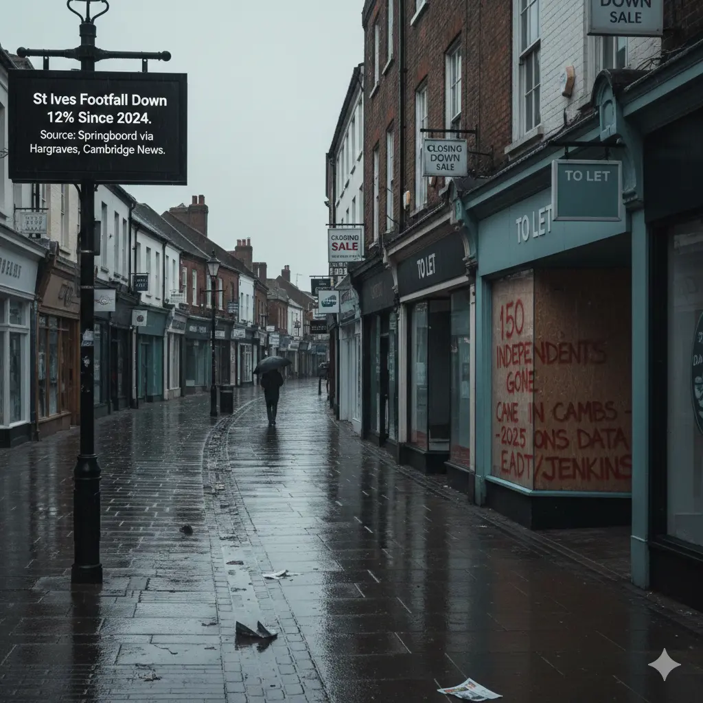 Statistics paint a grim picture. As per Hargreaves of Cambridge News, Springboard data shows 12% footfall drop in St Ives since 2024.