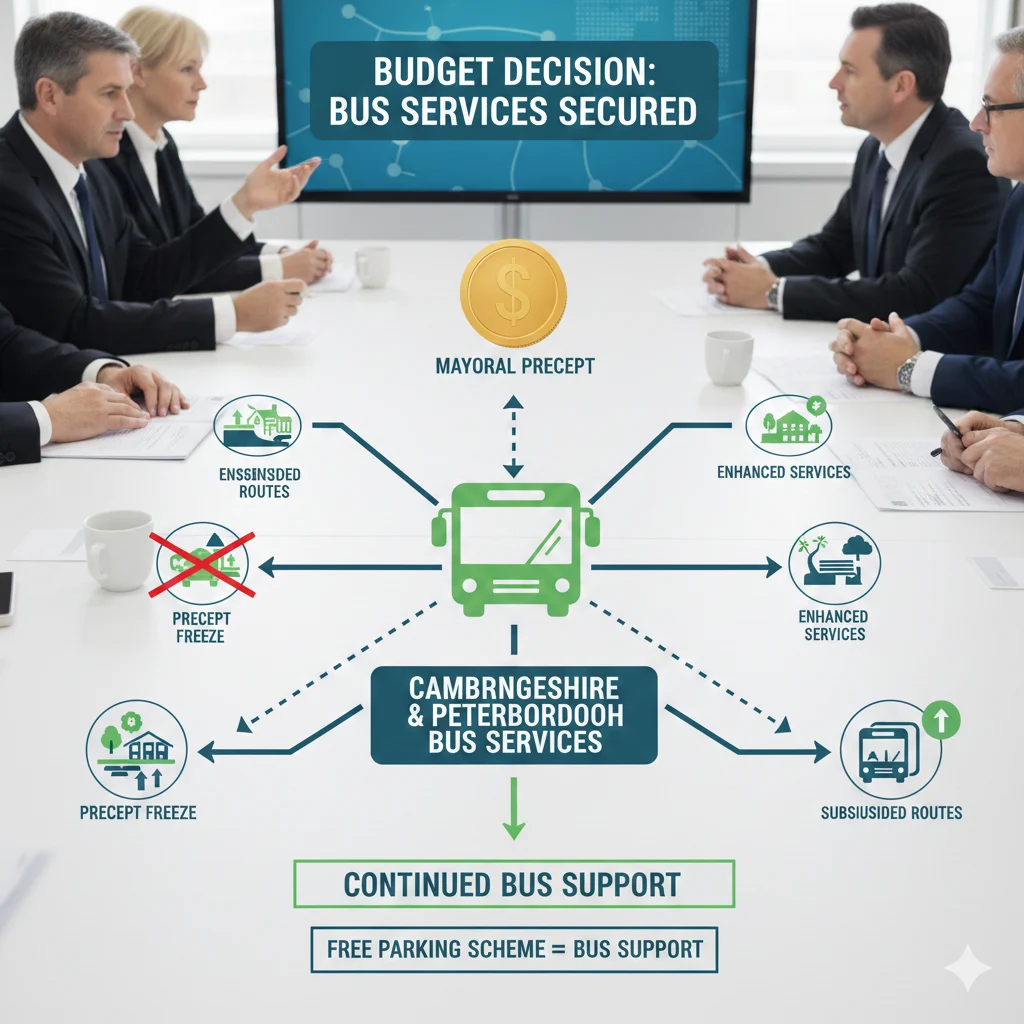 As reported by local democracy reporters and regional outlets, the decision means selected car parks in Peterborough and parts of Huntingdonshire will move to a free‑to‑use model for a trial period of two years, while the Combined Authority will use other funding streams, including the existing mayoral precept, to sustain public transport support rather than cutting that charge or parking tariffs in isolation.
