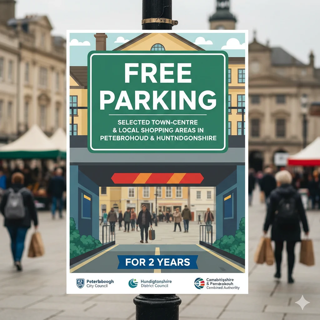 - Free parking could encourage more people to visit Peterborough and affected Huntingdonshire centres, supporting retailers and hospitality businesses.
