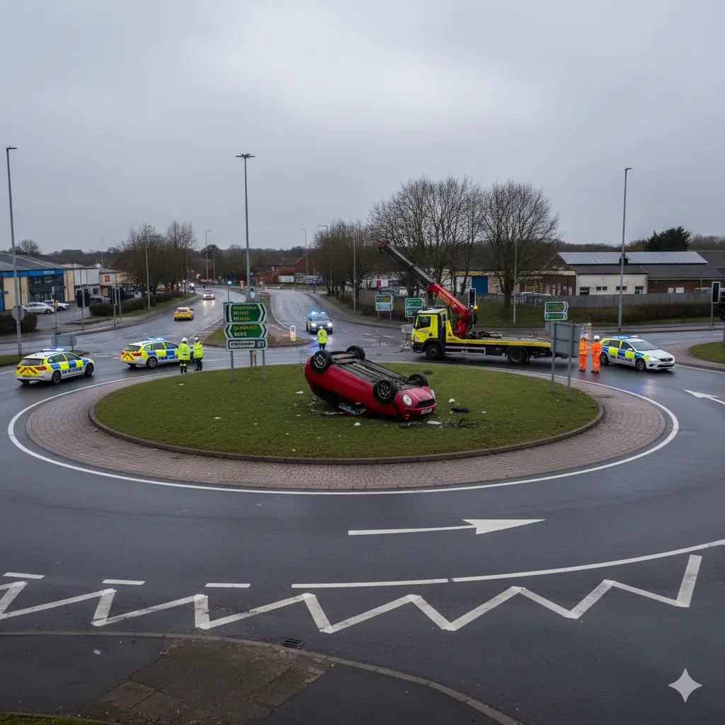 Cambridgeshire (Cambridge Tribune) 27 December 2023 -A dramatic single-vehicle crash unfolded on the Fenland Way roundabout near Tesco when a silver Skoda Fabia overturned after somersaulting through the air, prompting a public call to Cambridgeshire Police and capturing national attention through dashcam footage. The driver miraculously escaped serious injury in the incident that highlighted road safety concerns at the junction. Eyewitness accounts and official statements underscore the rapid response from bystanders and authorities.