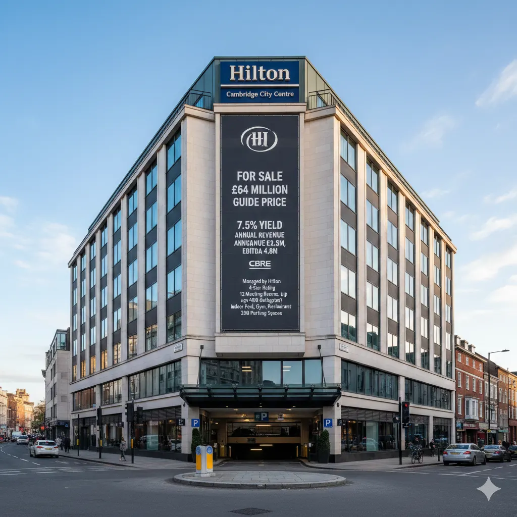 - The Hilton Cambridge City Centre hotel, a prominent 257-room property, is being marketed for sale at over £60 million.