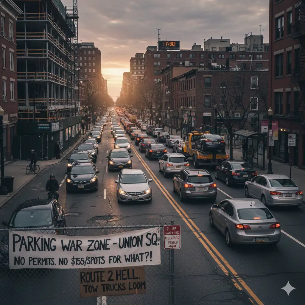 Car owners decry chronic shortages resident permits cost $155/year for just 500 spots with street parking limited to two hours and aggressive towing common. Route 2 backups stretch commutes to 45 minutes during peaks (7-9am, 4-6pm), while MBTA buses (routes 77/62) run irregularly evenings, frustrating those without bikes or unlimited transit passes ($90 monthly). Construction from Union Square developments (2026-2029) exacerbates potholes and noise, turning side streets into de facto parking war zones.