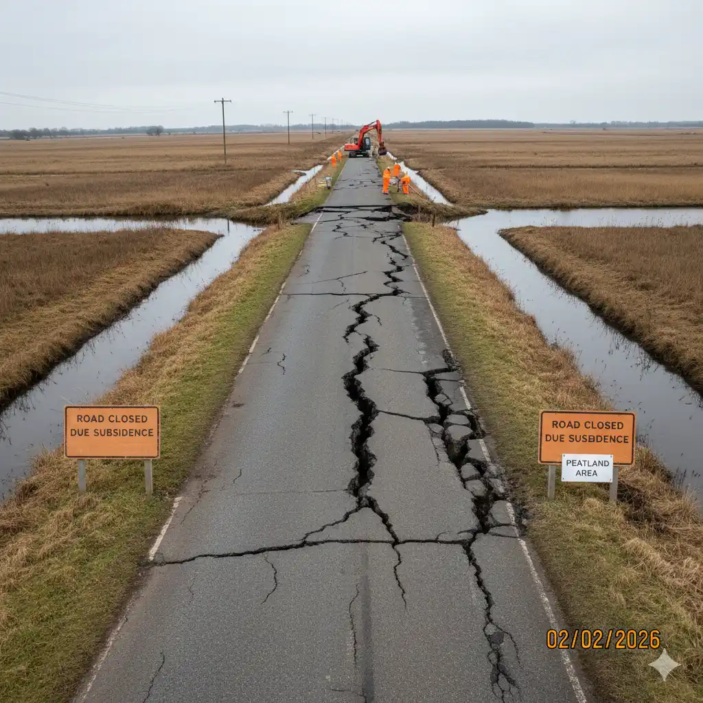 The council noted that peatland constitutes about 40% of Cambridgeshire’s land area, encompassing most of Fenland district along with substantial portions of Huntingdonshire and East Cambridgeshire. This peat makes “the area’s roads particularly difficult and expensive to maintain”, as stated directly by the authority. The repair technique employed—digging 40cm deep, grinding and re-laying stabilised material—represents a standard response to peat subsidence, but one that demands significant resources and disruption. Such work is recurrent, reflecting the ongoing compressibility of peat under traffic loads and climatic influences.