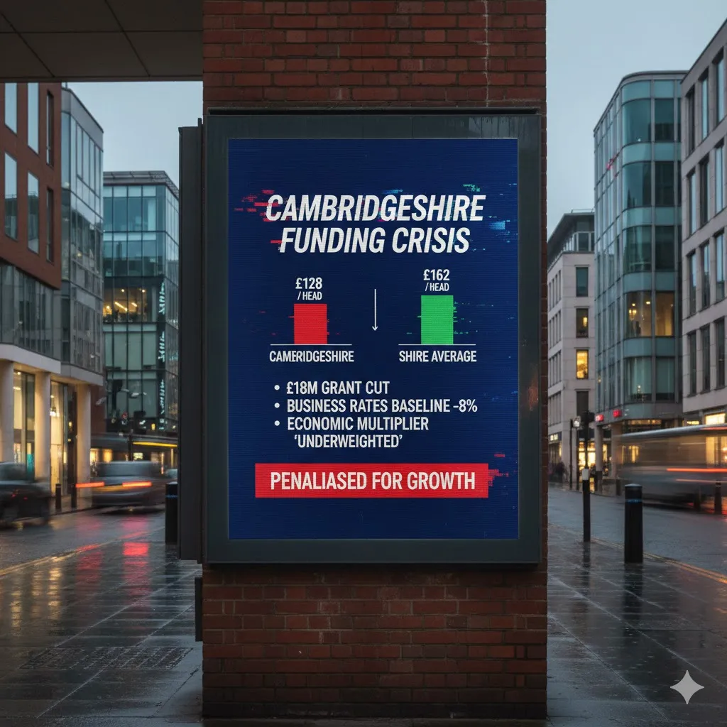 Council leader Lucy Nethsingha described the proposal as “unavoidable reality” during 28 January cabinet briefing. Government grants fell 12 per cent since 2024 alongside 8.2 per cent contract inflation.