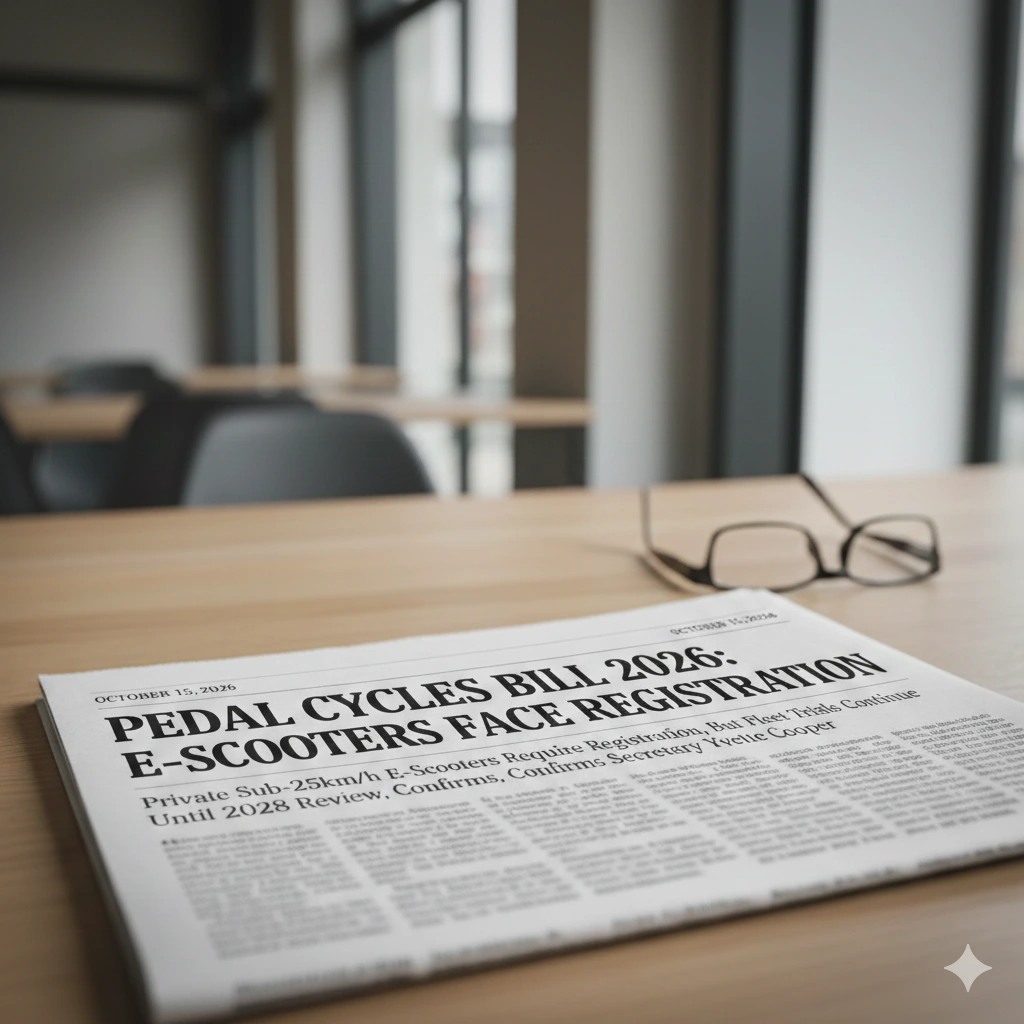 The Pedal Cycles Bill 2026 proposes classifying sub-25km/h e-scooters for private use with registration. However, Home Secretary Yvette Cooper confirmed trials continue only for fleets until 2028 review.