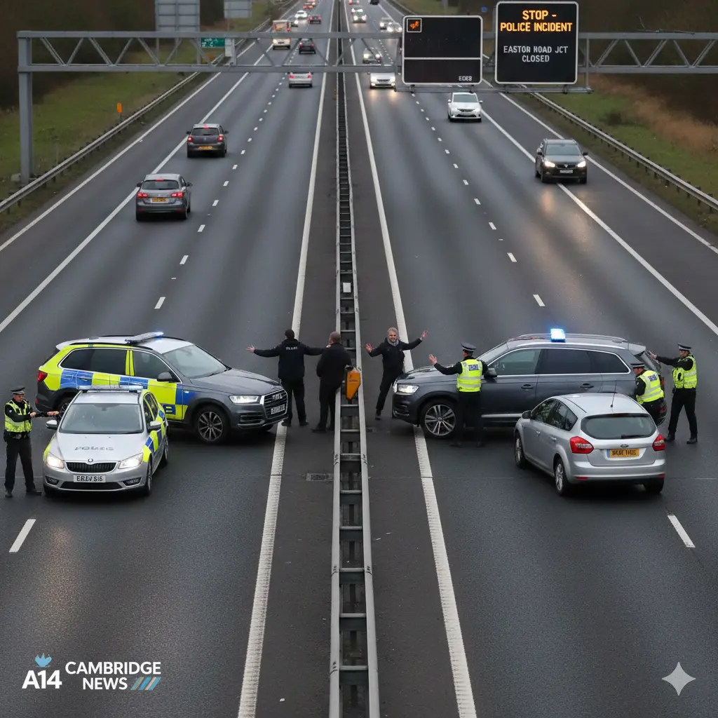 Over half an hour later, the police stopped two vehicles on the A14 at the junction with Easton Road in Huntingdon, a location referenced in the Cambridge News A14 topic page as part of the major trunk road network serving the region. Two men were arrested at the scene, with a third man taken into custody the next day in connection with the incident. Cambridgeshire Police have confirmed this sequence of events, emphasising the swift action that led to the arrests.