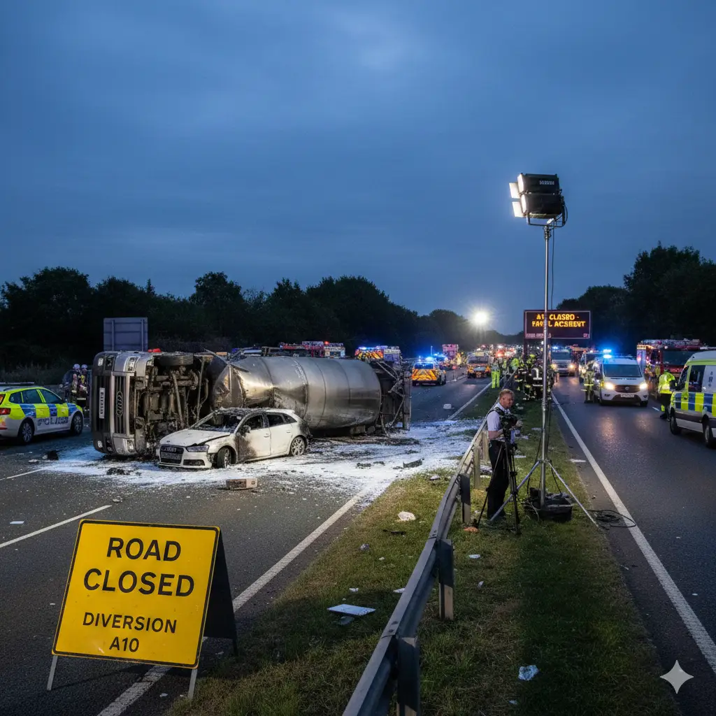 In another serious case reported by ITV News Anglia, two women died in a head-on crash between a fuel tanker and an Audi on the A10 between Littleport and Ely, with the fuel tanker driver arrested on suspicion of causing death by dangerous driving and later released on bail pending further enquiries. ITV News Anglia said the collision happened at around 18:40 on a Thursday and that the A10 remained closed for much of the day afterwards, demonstrating how head-on collisions involving larger vehicles can have devastating consequences and lengthy operational impacts on key regional routes.​